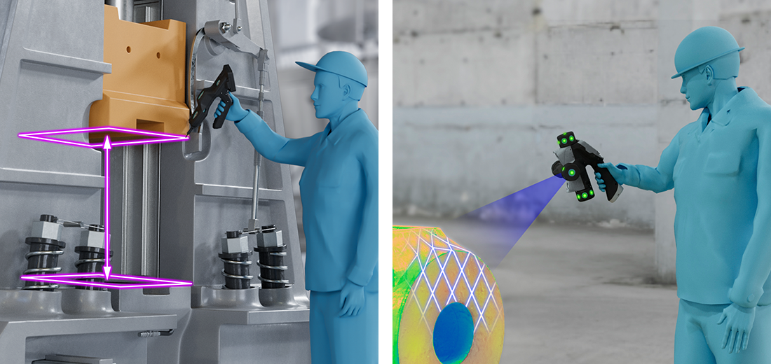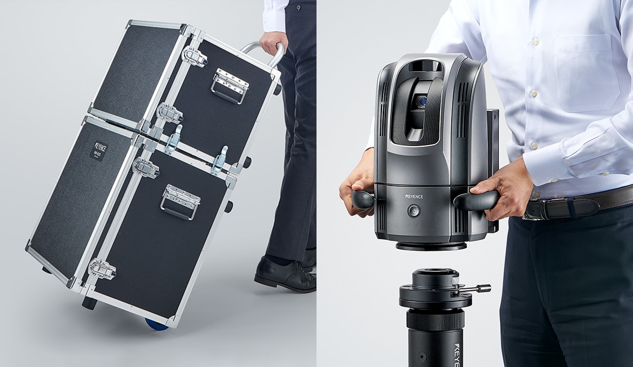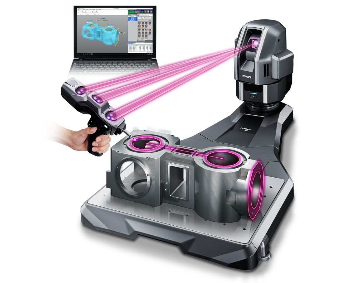 大范圍三坐標測量儀“WM-6000系列”是一款可輕松測量產品尺寸和形狀的測量儀。可由接觸式測量尺寸,由激光掃描測量形狀。通過無線探頭進行自由的操作,可輕松測量大范圍。無需噴霧或貼紙等預處理,可實現高速、高精度的掃描。