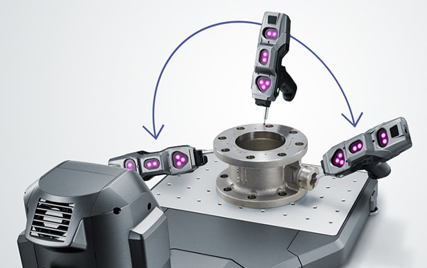 集桌面型三坐標測量儀及大范圍三坐標測量儀于一體的創新型三坐標測量儀,單人即可操作完成。手持式探頭設計可自由接近工件,操作簡便的同時,還可實現三維尺寸的高精度測量。