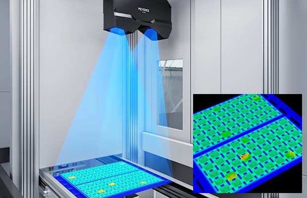 全自動掃描3D視覺系統LJ-S8000 系列采用基恩士全新技術的電機掃描光切斷方式,內置激光光源和掃描機構,因此無需照明、驅動載物臺及編碼器,只需安裝,即可進行尺寸、外觀、形狀等的檢測及辨別。此外,可對各種材質的目標物以最快拍攝0.2秒及重復精度0.3 μm的超高速度和精度進行在線全數檢測。而且,只需通過“拍攝導航”(無需專業知識,僅需選擇圖像即可完成設定)功能選擇合適的圖像即可完成調整,可大幅縮短設定及調整的工時。