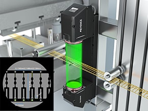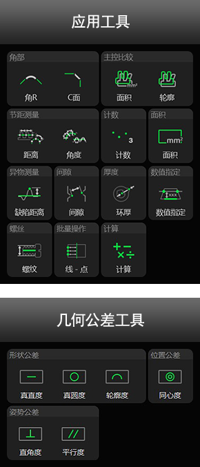 TM-X5000 系列在線投影圖像測量儀通過捕捉目標物的輪廓,實現快速、精準的測量。配備專屬設計的遠心光學系統,可清晰拍攝目標物邊緣,并在目標物發生偏移時,仍能維持超高的測量精度,可以在±20 mm的景深范圍內保持穩定性能。該系列采用低失真鏡頭,即便是邊緣部位,拍攝圖像變形也很小,通過進一步采用原創算法處理,在視野內可不易受目標物放置位置的影響進行測量,無需額外布設外部光源及目標物的位置調整和校正。TM-X5000系列操作設定便捷,僅需 3 個步驟即可完成配置,且內置 100 多種測量工具,除簡單尺寸測量以外,還可實現幾何公差測量、便于識別品種的標準輪廓比較、便于外觀檢測的缺陷距離測量等在線檢測所需的多種測量內容。