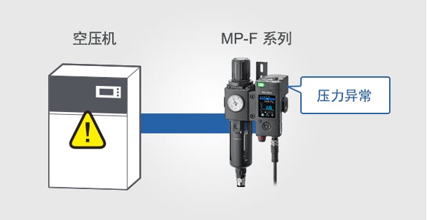 氣體用節能單元 MP-F 系列可同時感測空氣流量、壓力、溫度以及濕度,還可通過連接電量監控器輕松實現設備能源使用量的可視化。配備可自動記錄節能活動中的空氣使用量及用電量等重要數據的“全時記錄功能”。可通過富有表現力的多功能顯示器確認存儲的數據。此外,配備能在設備不運行時截斷管道的截止閥,可減少不必要的空氣消耗并以設備為單位發揮節能效果。還可監控空氣狀態,提前察覺到由壓力下降導致的故障并提示異常。