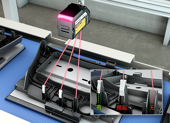 一旦工件的位置、角度出現偏移,激光的照射點就會改變,導致誤檢測。