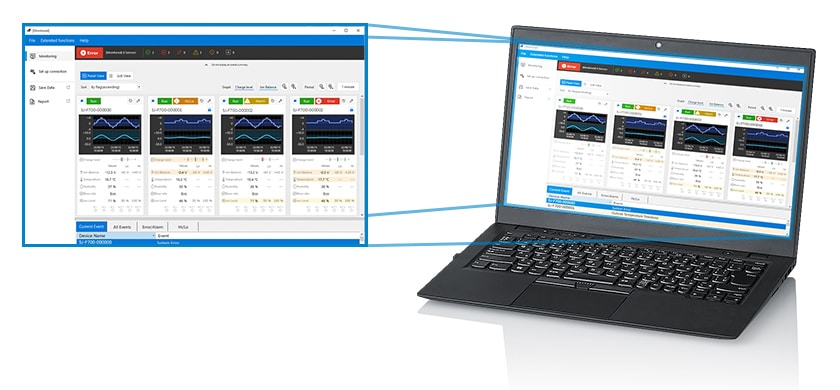 不必前往現(xiàn)場,通過PC軟件最多可以確認100臺風扇的狀態(tài),