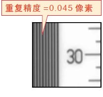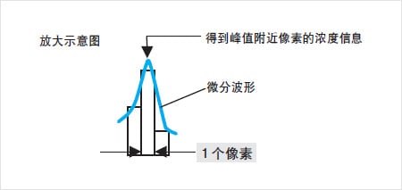 對于微分波形中最大部分的中心附近的3個像素,根據這3個像素形成的波形,進行修正演算。以1/100像素為單位測算邊界位置(亞像素處理)。