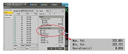 CV系列(CV2000以上)具有統計分析功能,可以保存測量數據,并對其進行統計分析。
