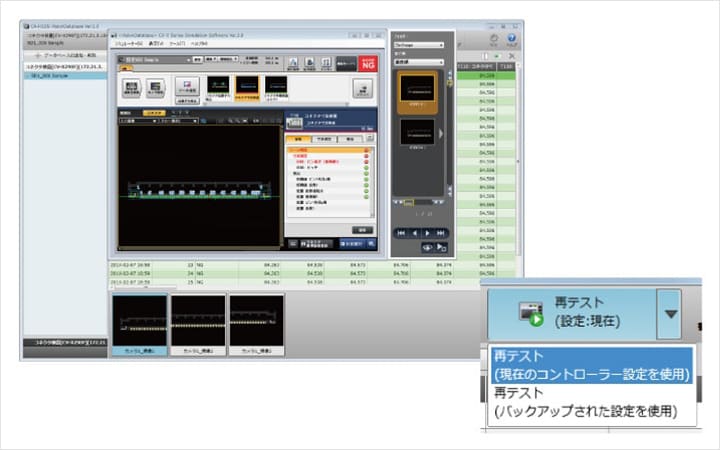 可以回顧歷史數據搜索檢測結果,還可利用NG圖像實施再測試??梢愿鶕e累的數據查明要因,還能有效幫助改善現場。